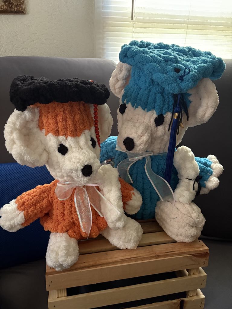 Custom handmade graduation teddy bear plushie with cap & gown customized to match the school colors. Keepsake soft and cuddly gift all ages - Large